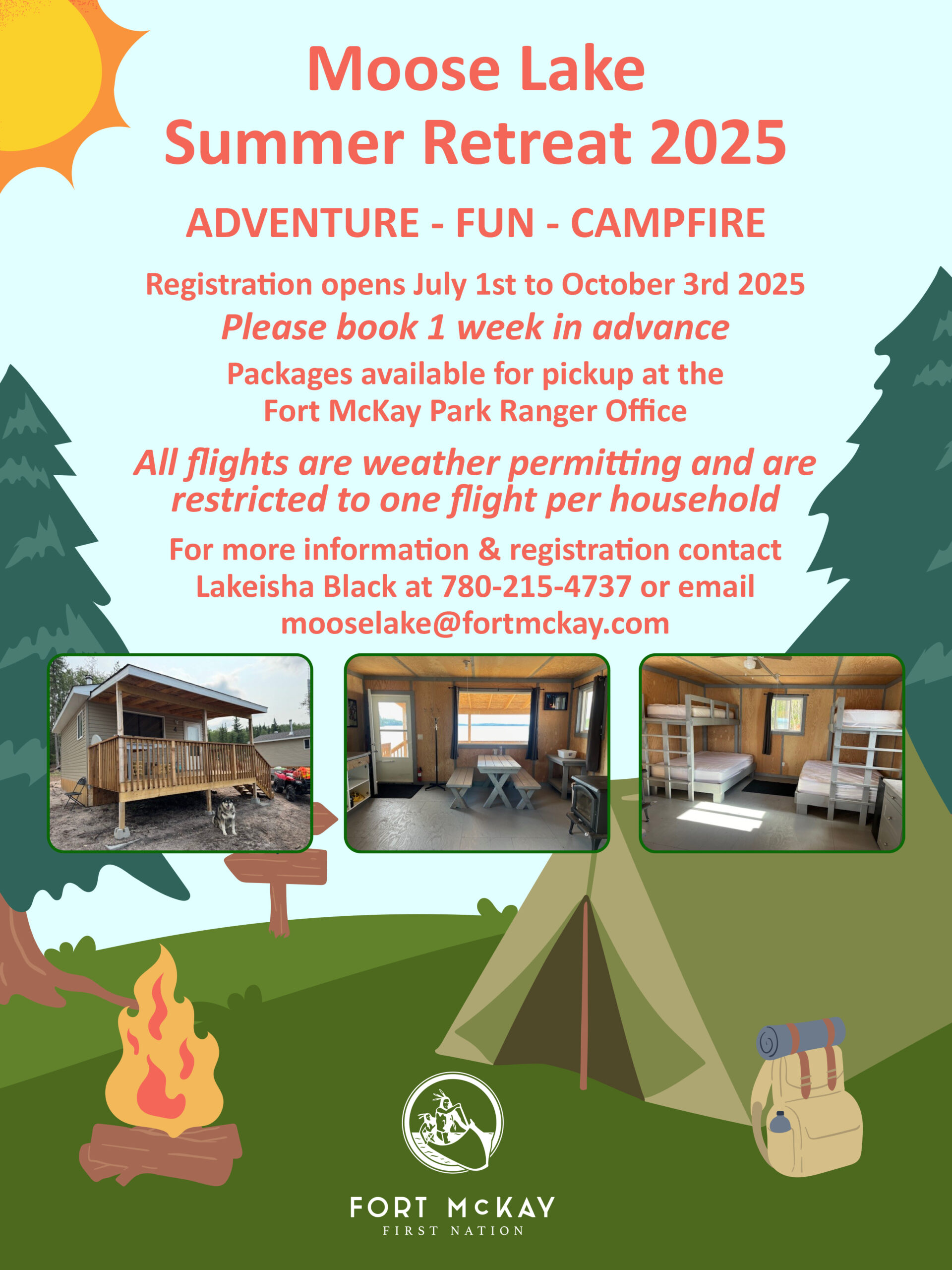 Any Suggestions for camp maintenance can be forwarded to Audrey Redcrow at mooselake@fortmckay.com