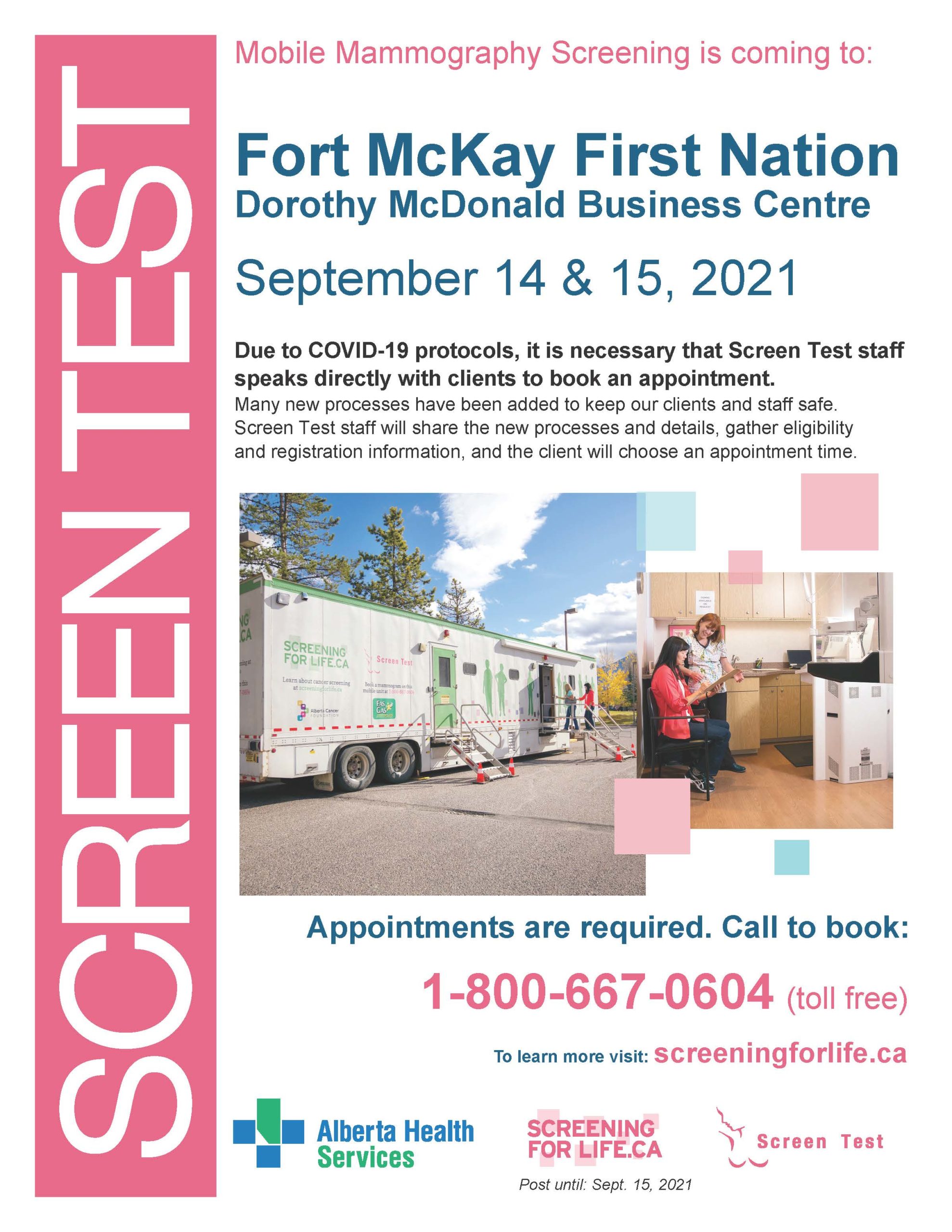 Due to COVID-19 protocols, it is necessary that Screen Test staff speaks directly with clients to book an appointment. Call to book: 1-800-667-0604.