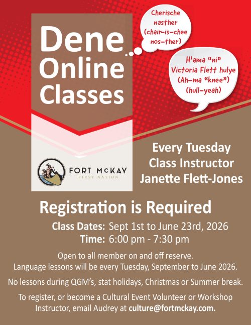 Open to all member on and off reserve. Language lessons will be every Tuesday, September to June 2026. Registration is required.