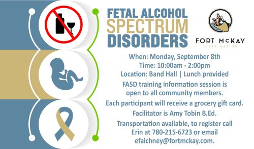 FASD training information session is open to all community members. Each participant will receive a grocery gift card. Facilitator is Amy Tobin B.Ed.