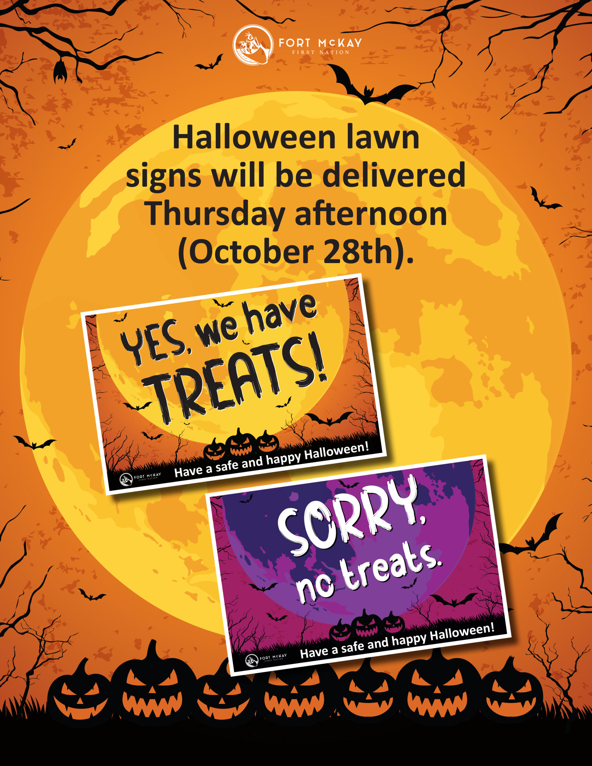 The Capital Projects team is delivering Halloween lawn signs in Fort McKay this afternoon.