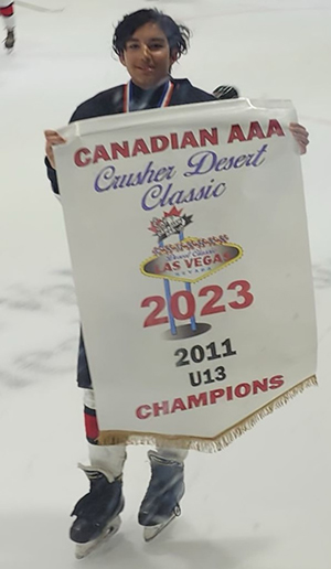 Fort McKay First Nation would like to congratulate Band Member Dayton Wilson for his success as part of the Championship team, the Triple AAA Canada Crushers, in the 2011-born category at the 2023 Canadian AAA Crusher Desert Classic hockey tournament.